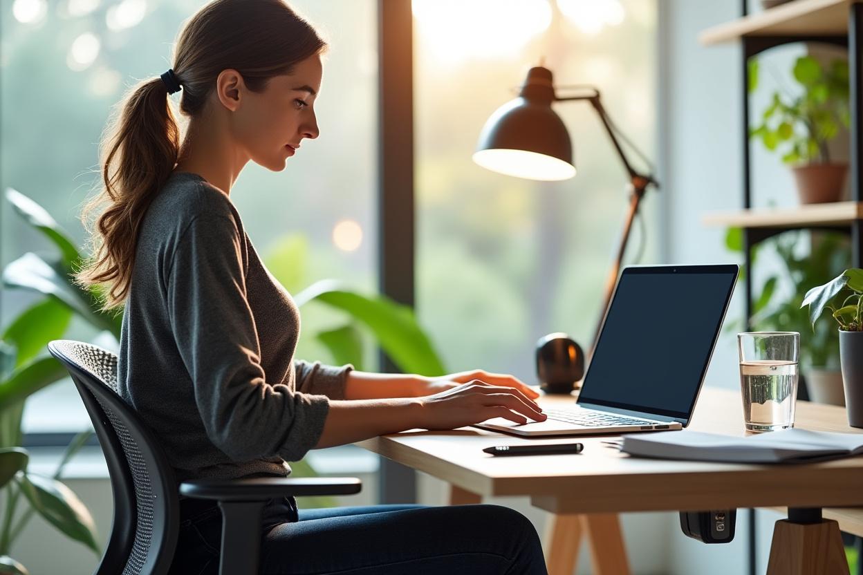 Investis dans une souris et un clavier ergonomiques pour réduire les tensions sur les poignets. Une station de travail organisée, avec accès facile aux périphériques, facilite la variation de posture sans perte de productivité.